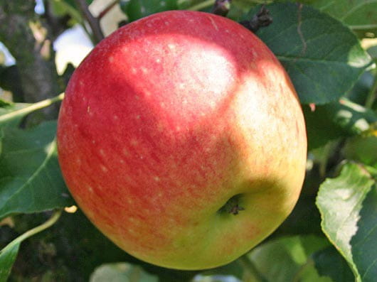 Plody dozrievajú už v júli. Jablká sú stredné až veľké, mierne predĺžené, jemne rebrované. Šupka je zelenožltá s karmínovým líčkom. Dužina je krémová, chrumkavá, aromatická a sladko-vinná. Pri oneskorenom zbere sa plody stávajú múčnaté.