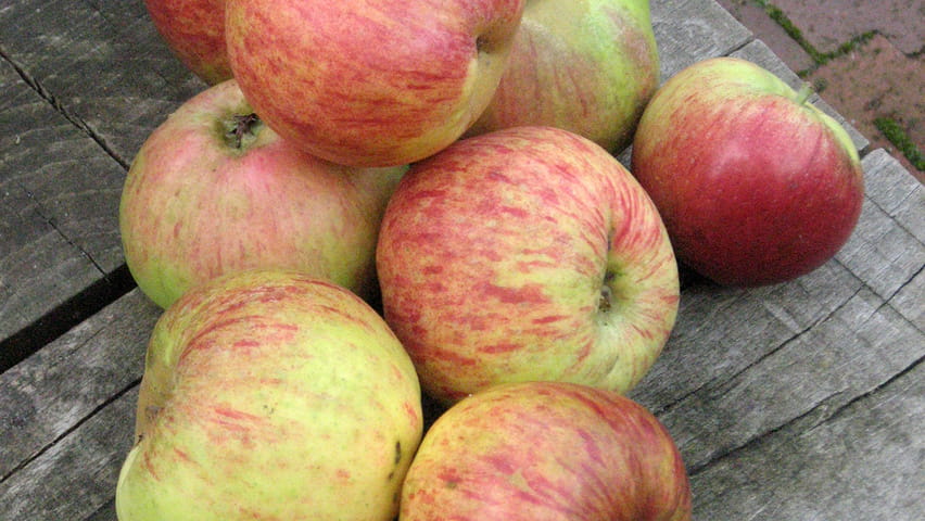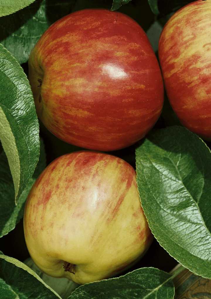 Plody sú stredne veľké až veľké, ľahké, s výrazným rebrovaním. Šupka je jemná, s voskovým povlakom, žltá s červeným pruhovaným líčkom. Dužina je biela, aromatická, veľmi šťavnatá a chutná. Patrí medzi najlepšie rané jesenné odrody.