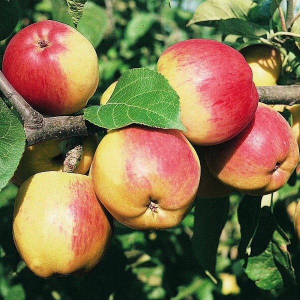 Plody sú stredné až veľké, guľaté, mierne sploštené. Šupka je hladká, lesklá, zelená až zelenožltá, s červeným, rozmazaným pásikavým rumencom. Dužina je krémová, veľmi šťavnatá, sladkokyslá a aromatická. Považuje sa za skvelú dezertnú odrodu.