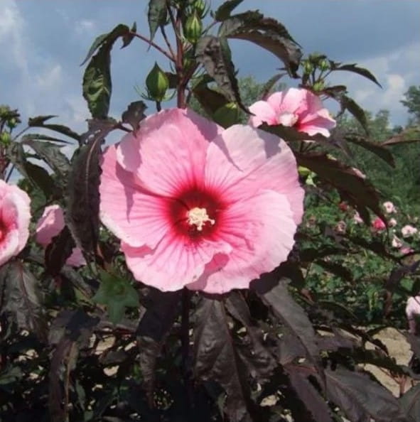 Ibištek bahenný Summer Storm je nápadná trvalka s tmavými purpurovými, laločnatými listami a jemnými ružovými kvetmi. Dorastá do výšky 90–120 cm a vytvára husté, kompaktné trsy.
